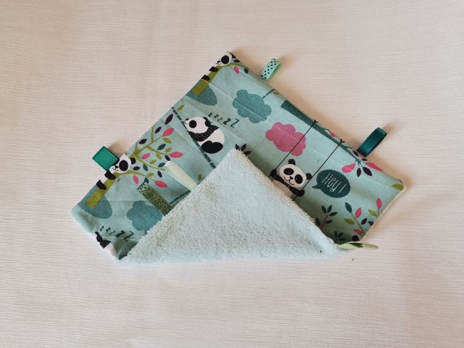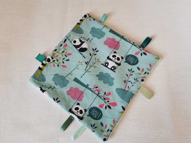 Doudou carré étiquettes parfait pour l'éveil de bébé .