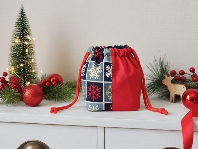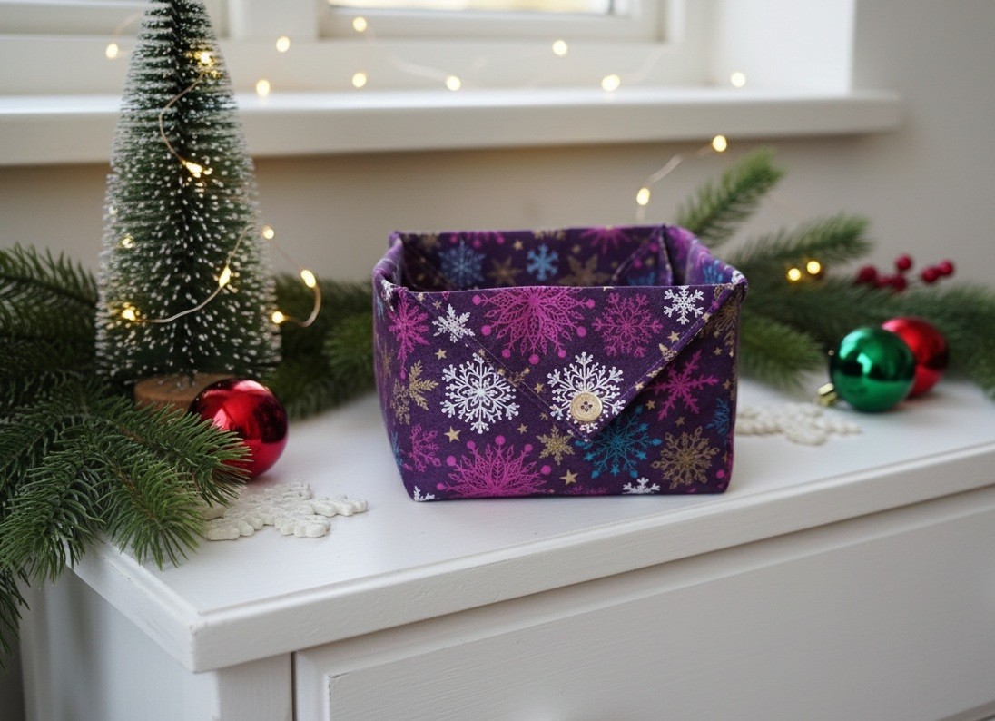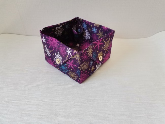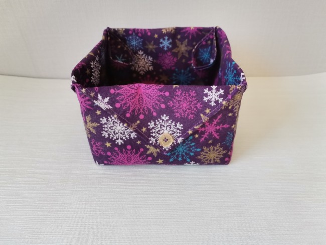 Réalisé en tissu certifié Oeko-Tex de couleur violet motifs flocons