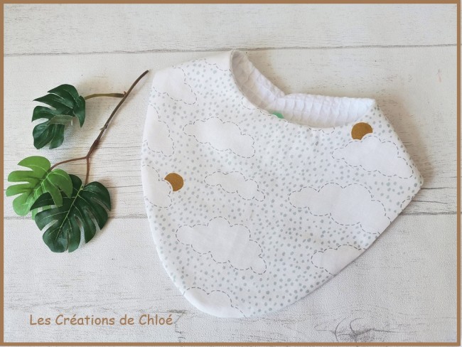 Ce joli petit bavoir se ferme par un bouton pression en résine de couleur
