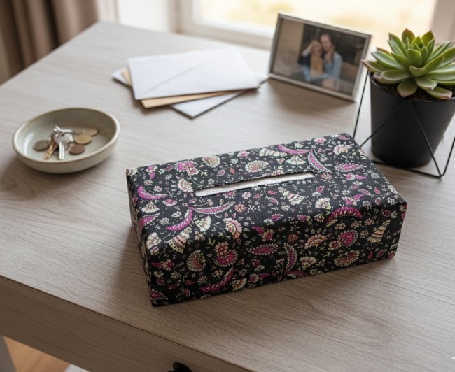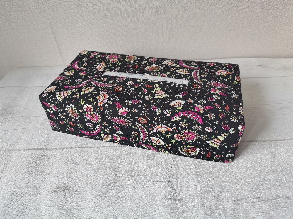Housse pour boite à mouchoirs noire motif cachemire