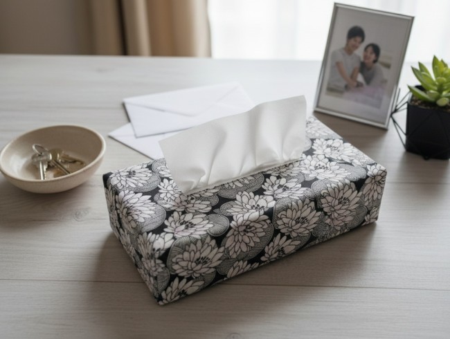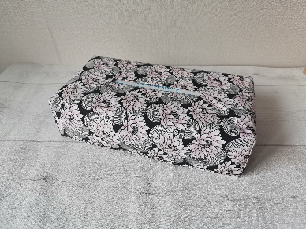 Housse pour boite à mouchoirs noire et grise motifs fleurs roses