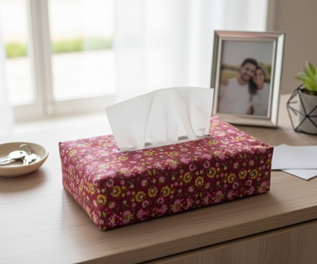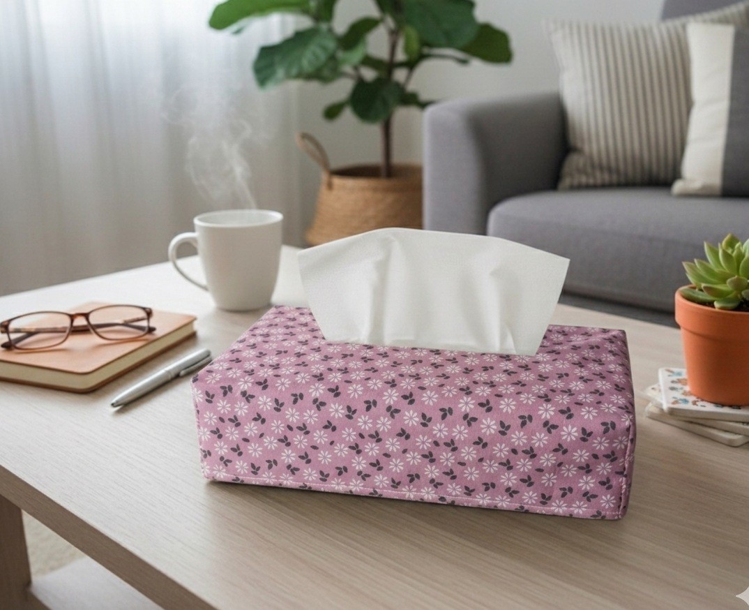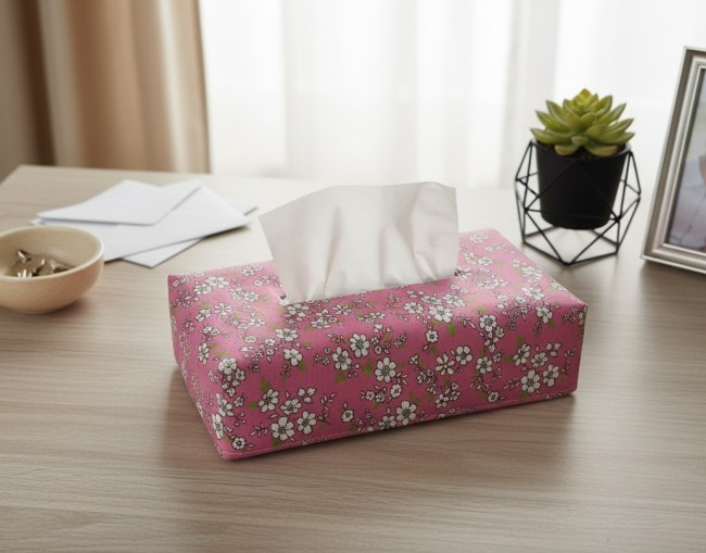 Housse pour boite à mouchoirs rose et petites fleurs blanches