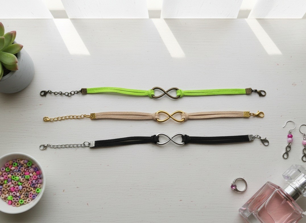 Lot de 3 bracelet suédine avec lien infini de couleur doré, argent mat et bronze