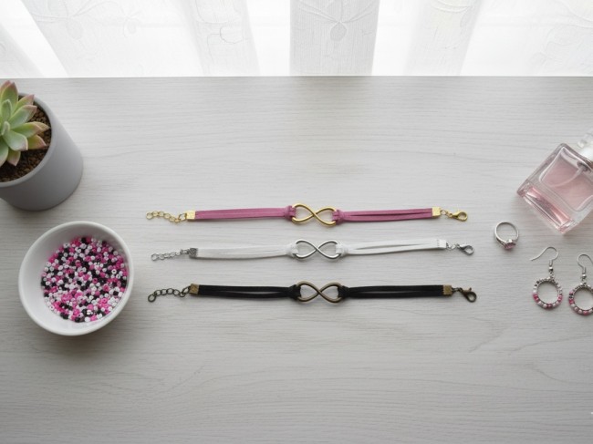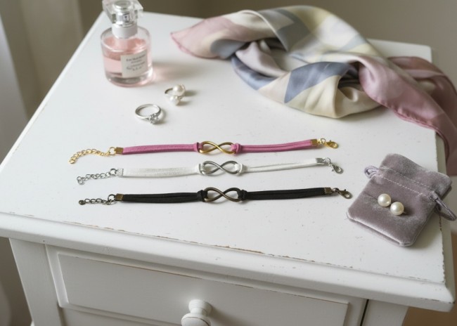 Lot de 3 bracelet suédine avec lien infini de couleur doré, argent mat et bronze