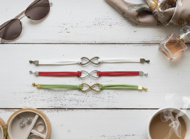 Lot de 3 bracelet suédine avec lien infini de couleur doré, argent mat et bronze