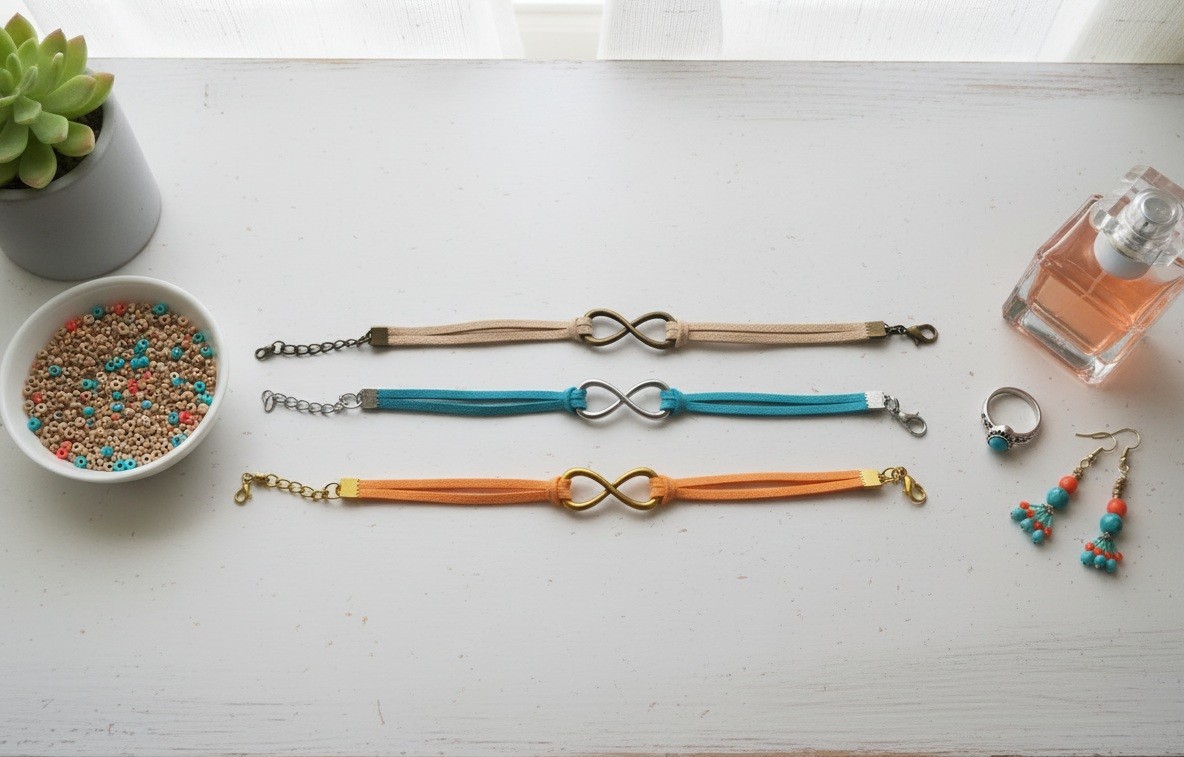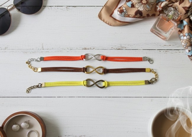 Lot de 3 bracelet suédine avec lien infini de couleur doré, argent mat et bronze