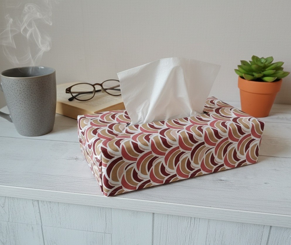 Housse pour boite à mouchoirs coton beige et motifs 3 couleurs