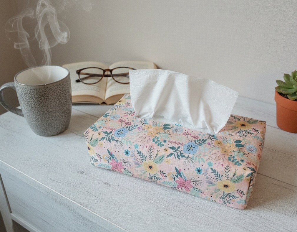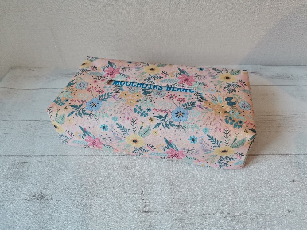 Housse pour boite à mouchoirs coton saumon et motifs fleurs