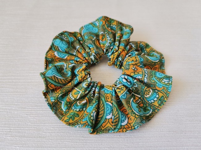 Chouchou coton vert motif cachemire