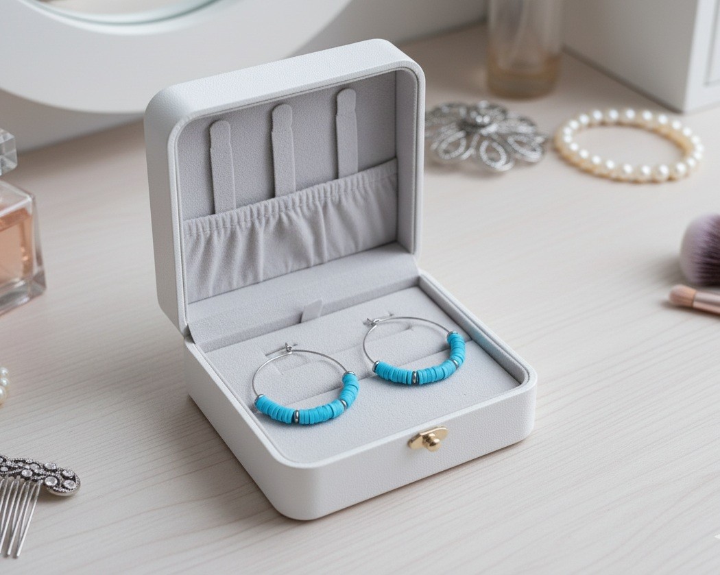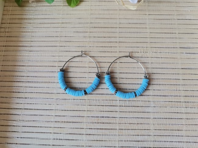 Boucles créoles acier inoxydable 30 mm et perles Heishi bleu