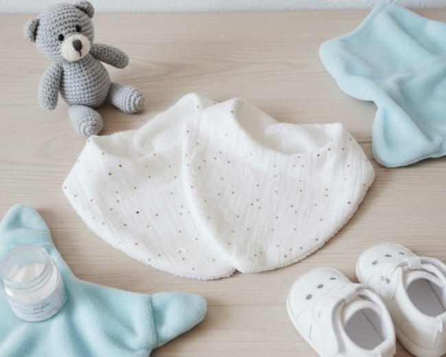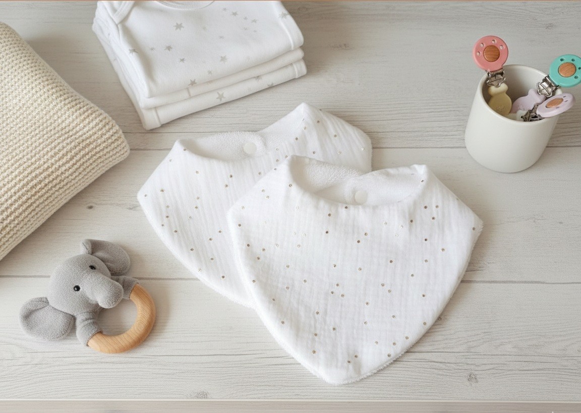 Lot de 2 jolis petits bavoirs idéal pour les premiers repas de bébé
