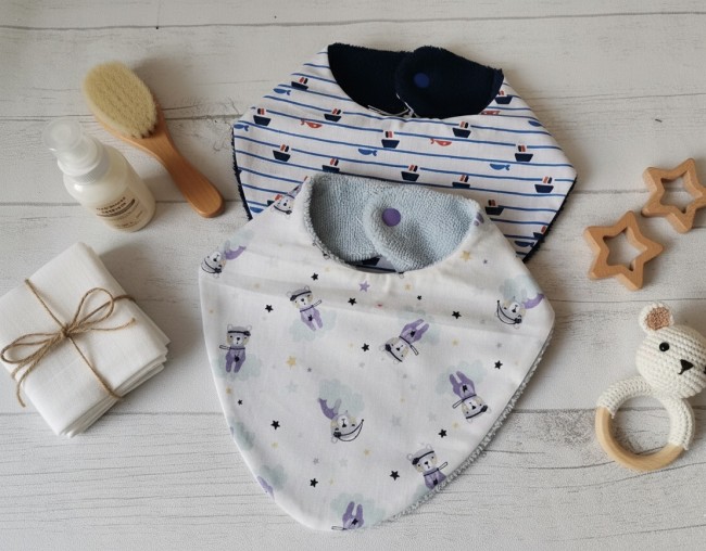 Lot de 2 jolis petits bavoirs idéal pour les premiers repas de bébé
