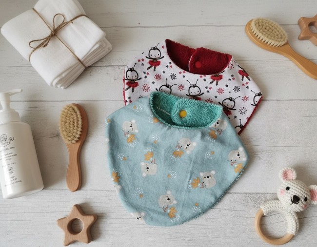 Lot de 2 jolis petits bavoirs idéal pour les premiers repas de bébé