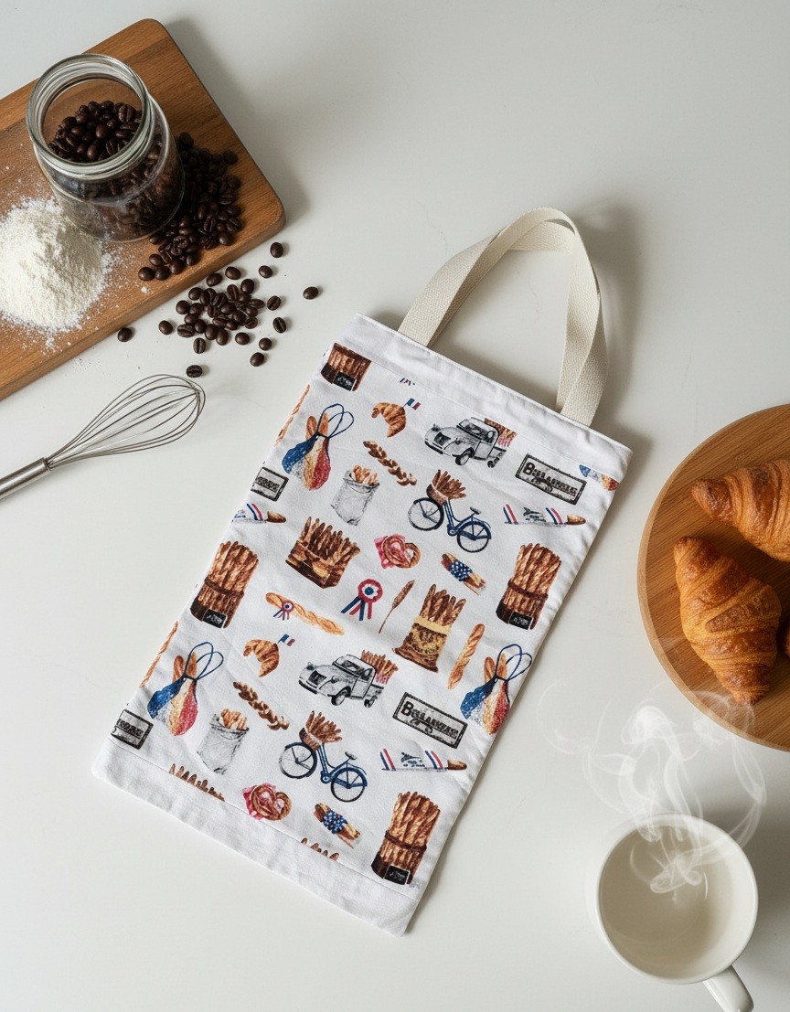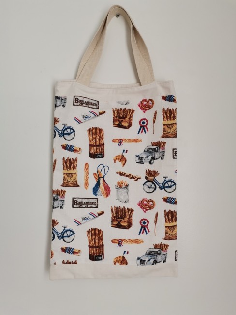 Réalisé dans du tissu coton motifs baguettes et produits français et doublé d'un tissu coton de couleur lin