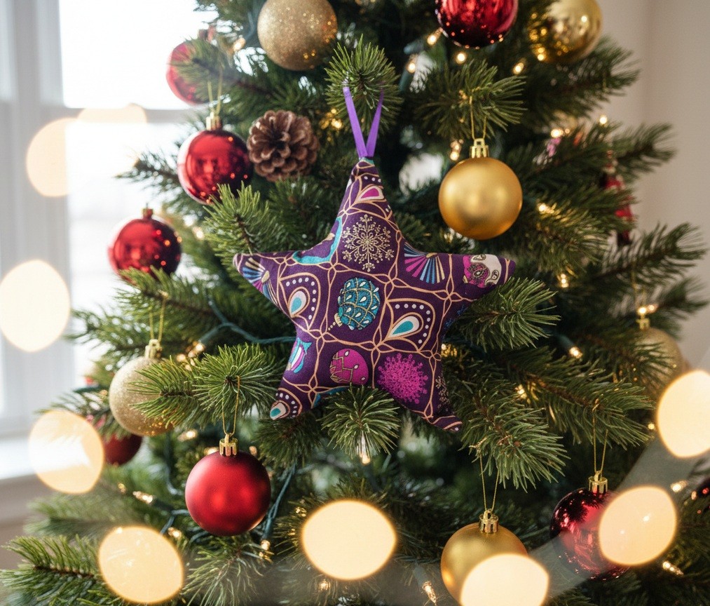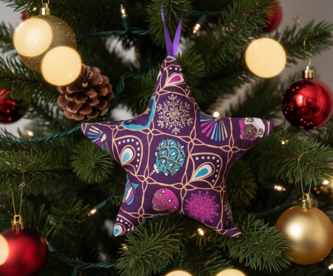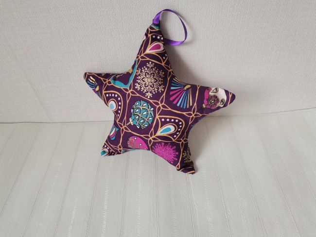 Etoile de noël à suspendre en tissu coton violet carreaux motifs noël
