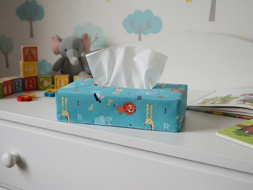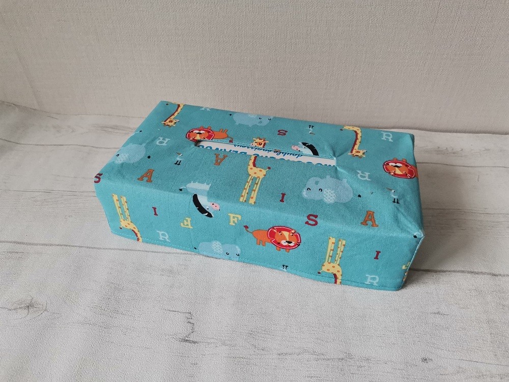 Housse pour boite à mouchoirs coton bleu et motifs animaux