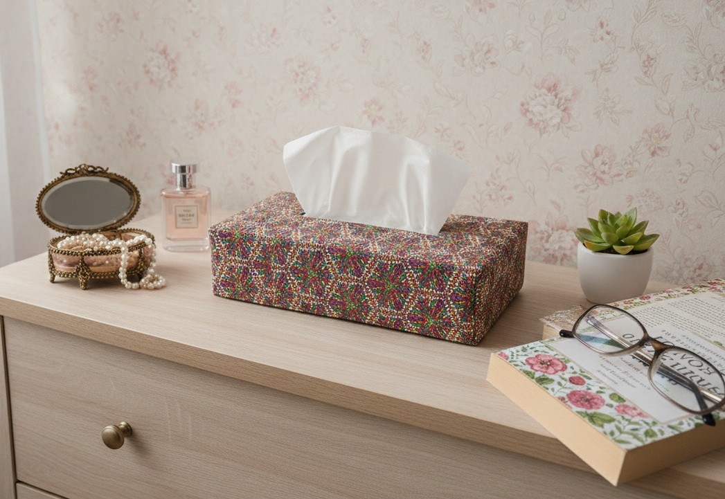 Housse pour boite à mouchoirs coton motifs octogonales mulitcolores