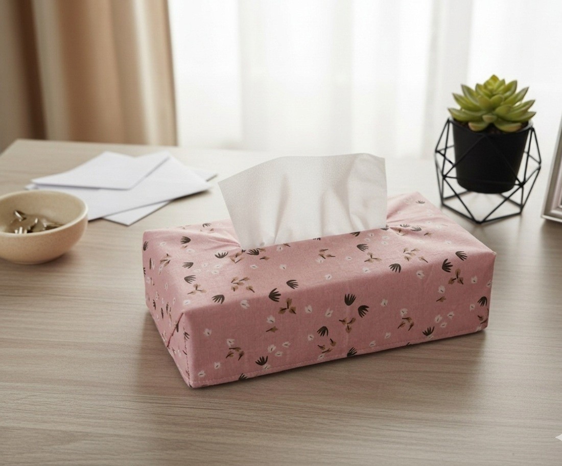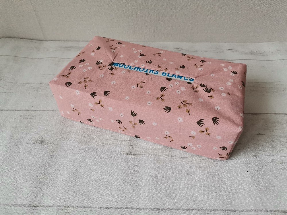 Housse pour boite à mouchoirs coton saumon motifs fleurs