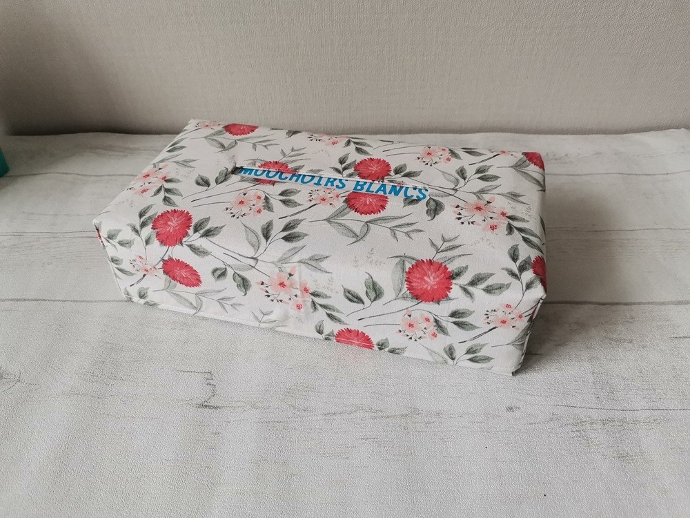 Housse pour boite à mouchoirs coton blanc motifs fleurs rouges
