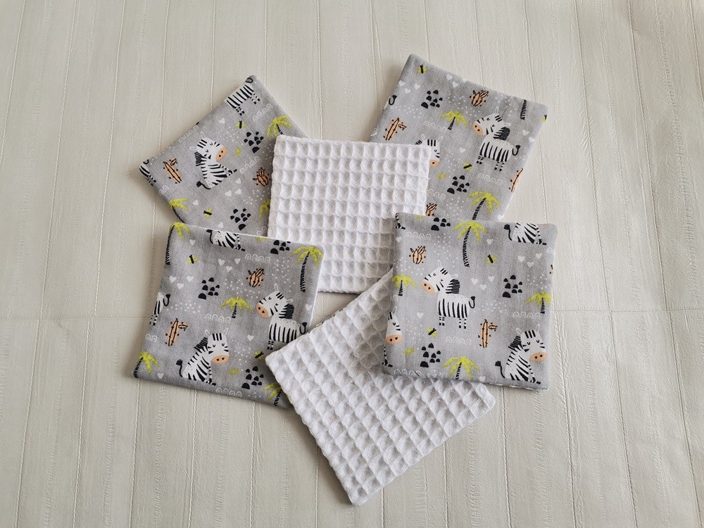 Un peu de douceur pour le change de bébé avec ce lot de 6 lingettes lavables