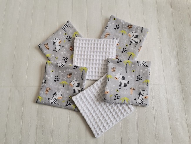 Une face coton certifié Oeko-Tex motifs zèbres et l'autre face en tissu nid d'abeilles de couleur blanche