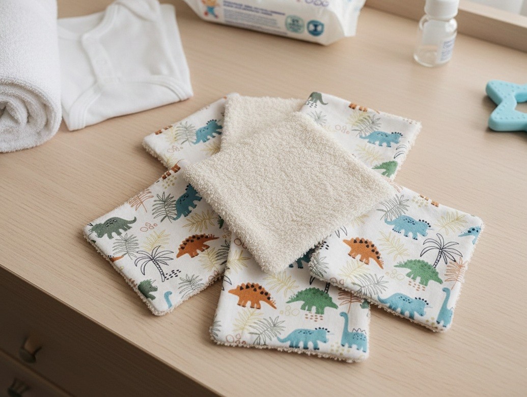 Un peu de douceur pour le change de bébé avec ce lot de 7 lingettes lavables