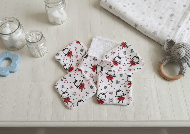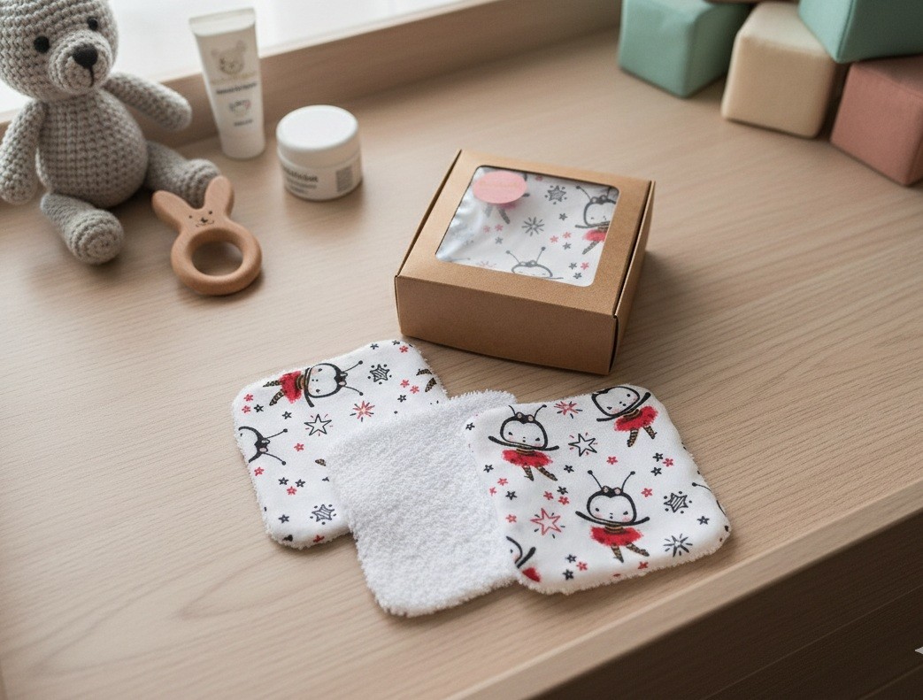 Un peu de douceur pour le change de bébé avec ce lot de 8 lingettes lavables dans leur boite cadeau