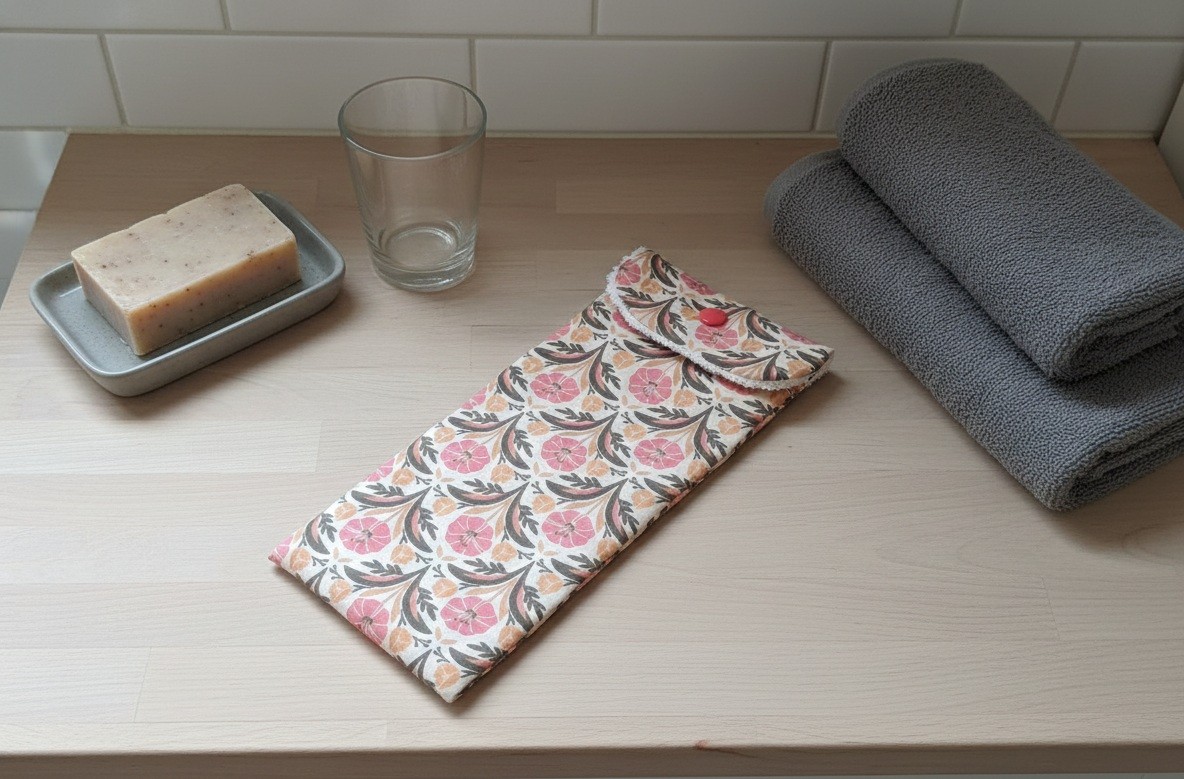 Je peux sur simple demande vous confectionner une pochette à savon ou shampoing solide assortie.