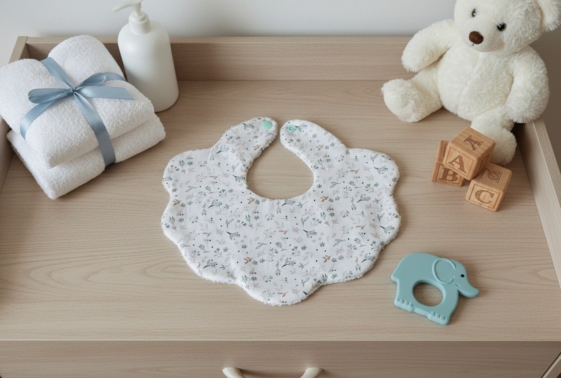 Petit bavoir idéal pour les premiers repas de bébé de 0 à 12 mois.