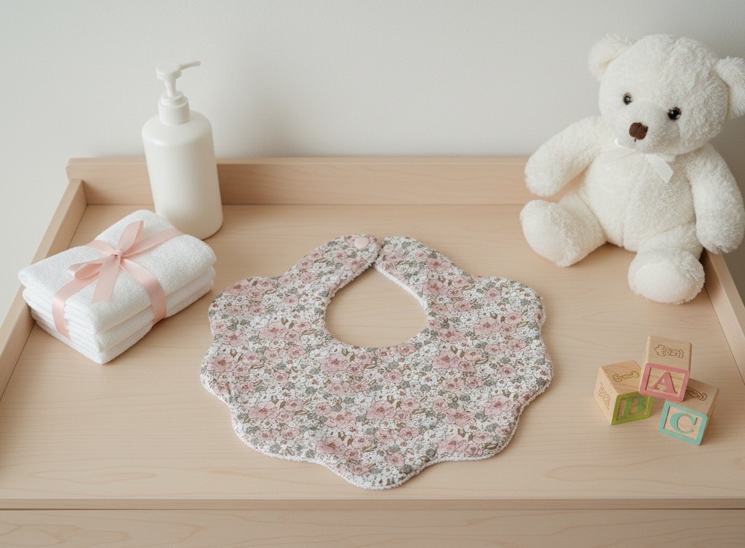 Petit bavoir idéal pour les premiers repas de bébé de 0 à 12 mois.