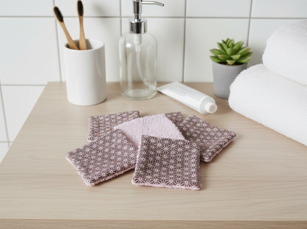 Réalisé dans un coton imprimé certifié Oeko-Tex et doublé en éponge de couleur vieux rose