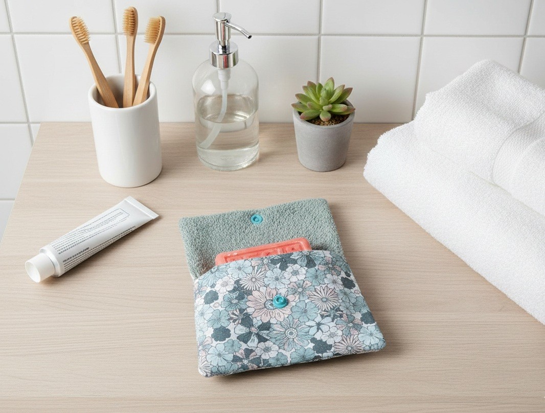 Dimension pochette à savon : 13 x 10.5 cm de haut (fermé)