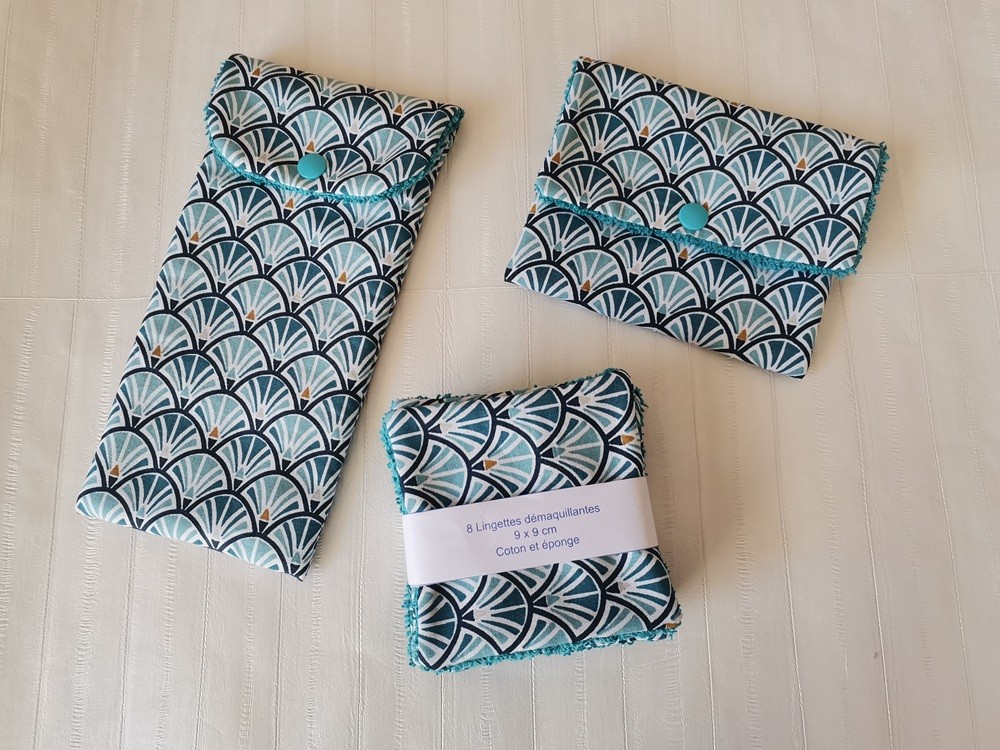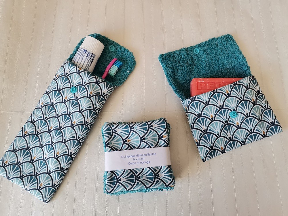 Ensemble toilette composé d'un étui brosse et dent et dentifrice, d'une pochette à savon et 8 lingettes démaquillantes