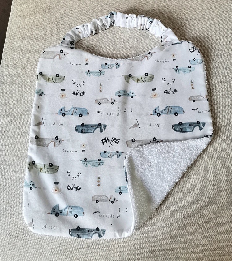 Réalisé en tissu coton certifié Oeko-Tex imprimé et doublée tissu éponge blanche