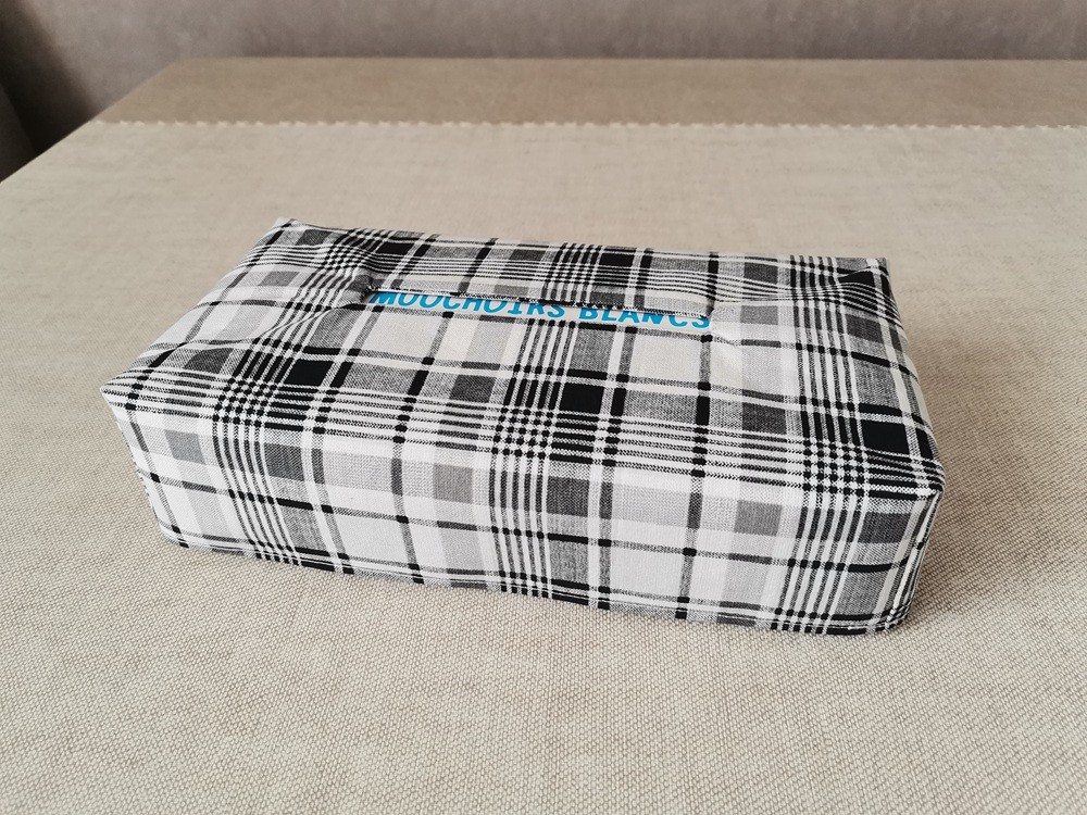 Housse pour boite à mouchoirs coton blanc carreaux noirs