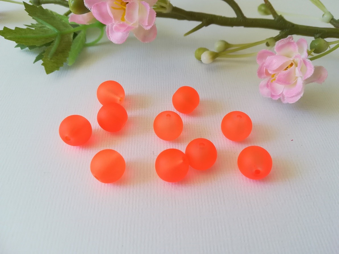 10 Perles en verre givré 10 mm orange fluo