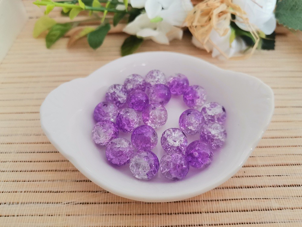 10 Perles en verre craquelé 10 mm violet