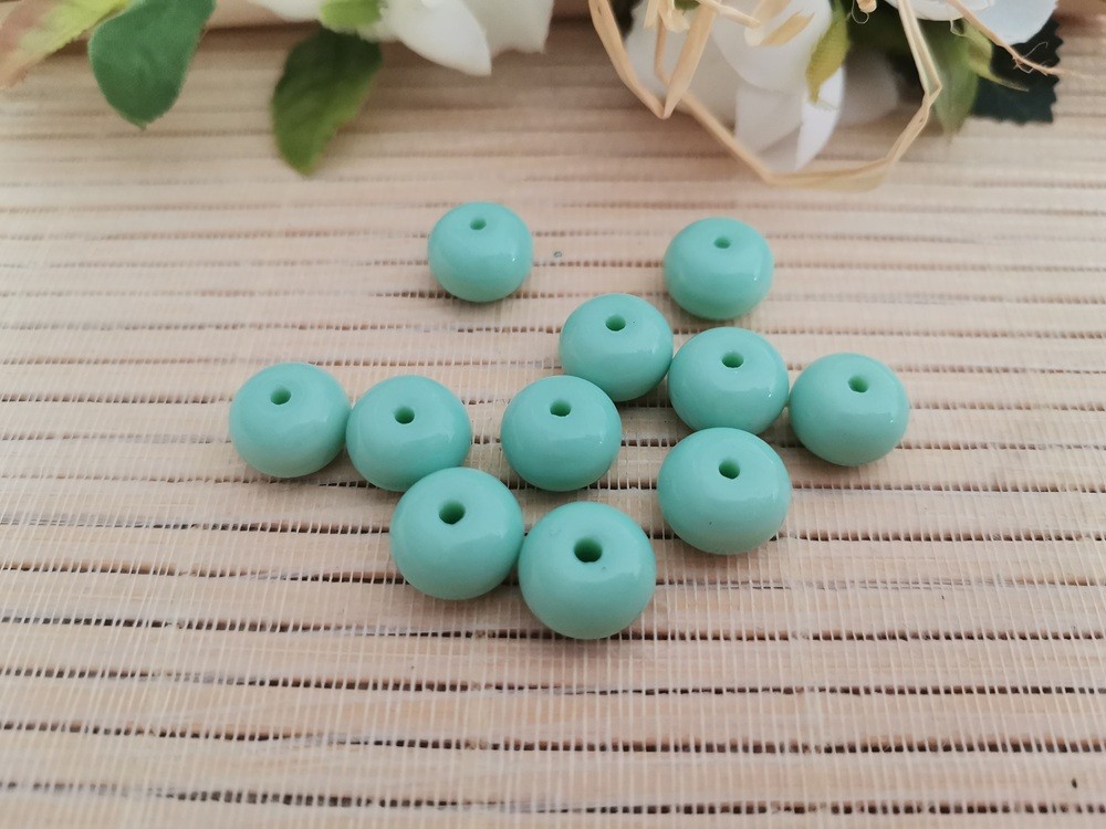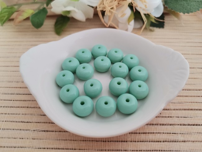 11 Perles en verre rondelle 9 x 6 mm vert clair