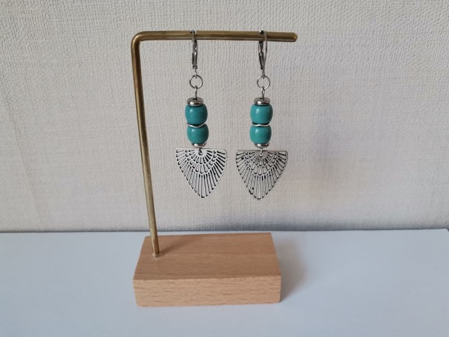 Boucles d'oreilles composées d'un pendentif forme aile en métal et de perles en verre colonne 8 mm
