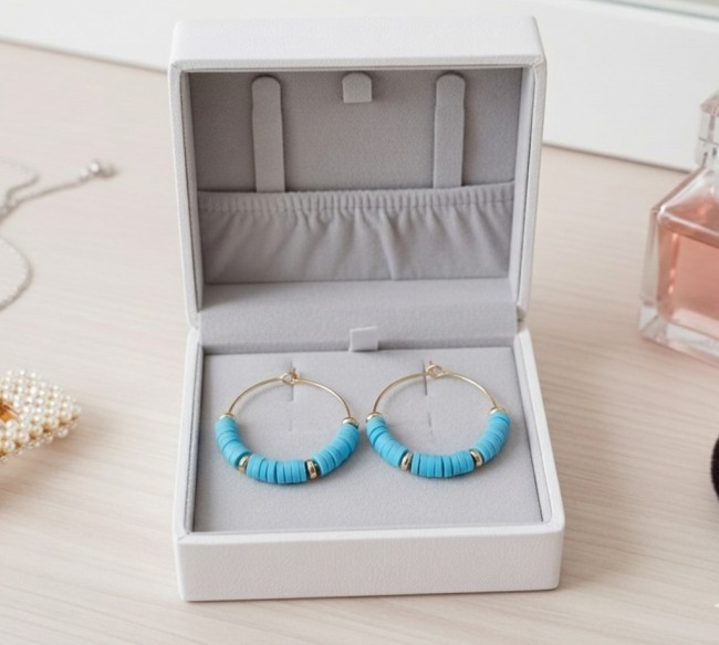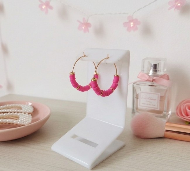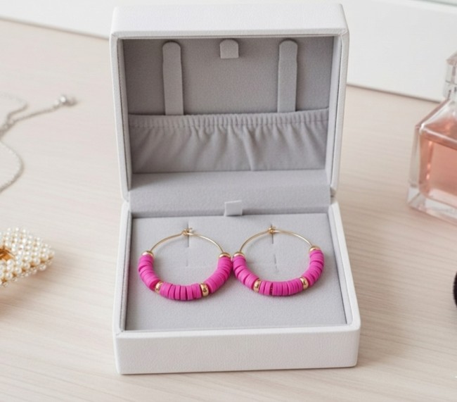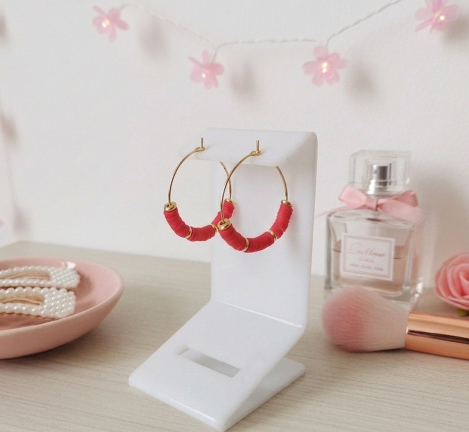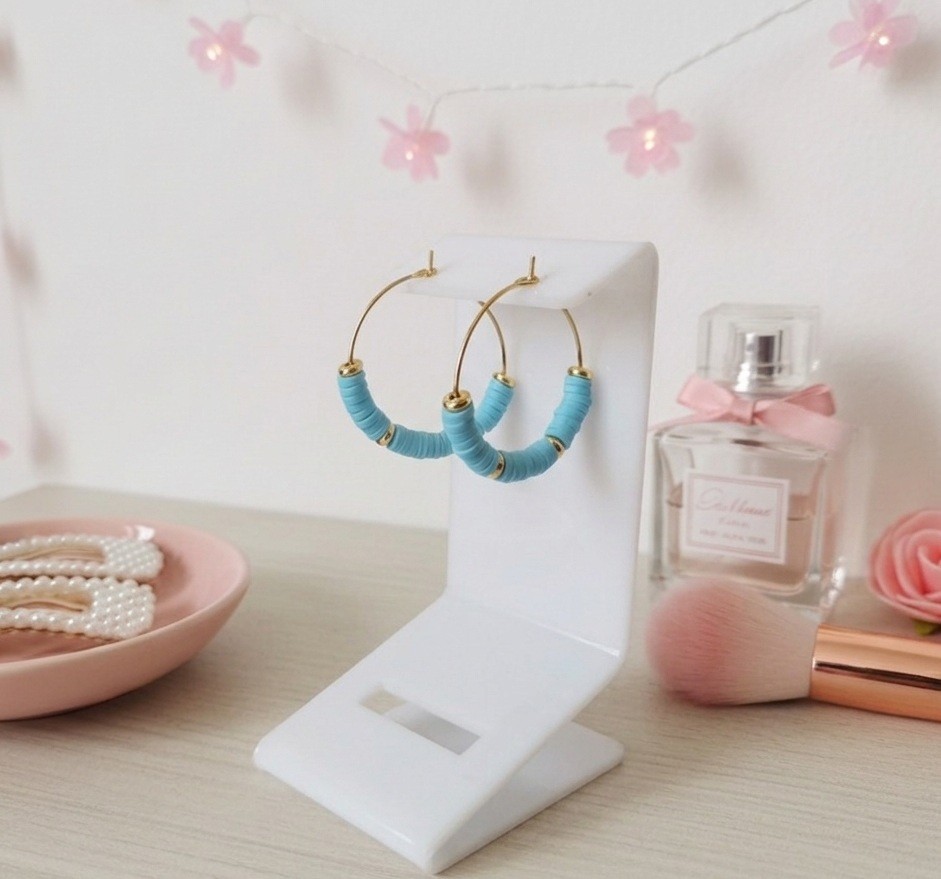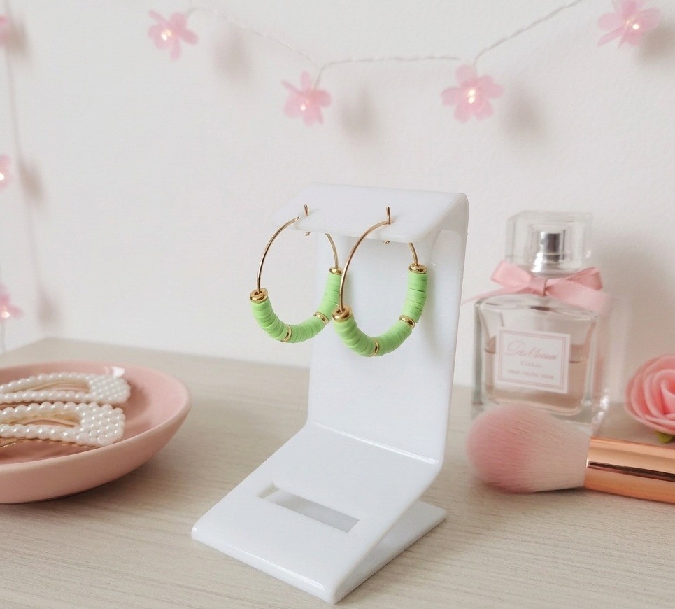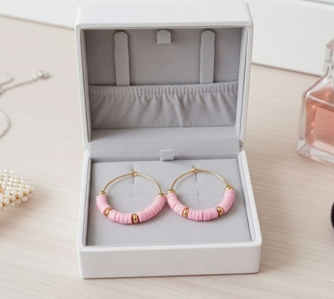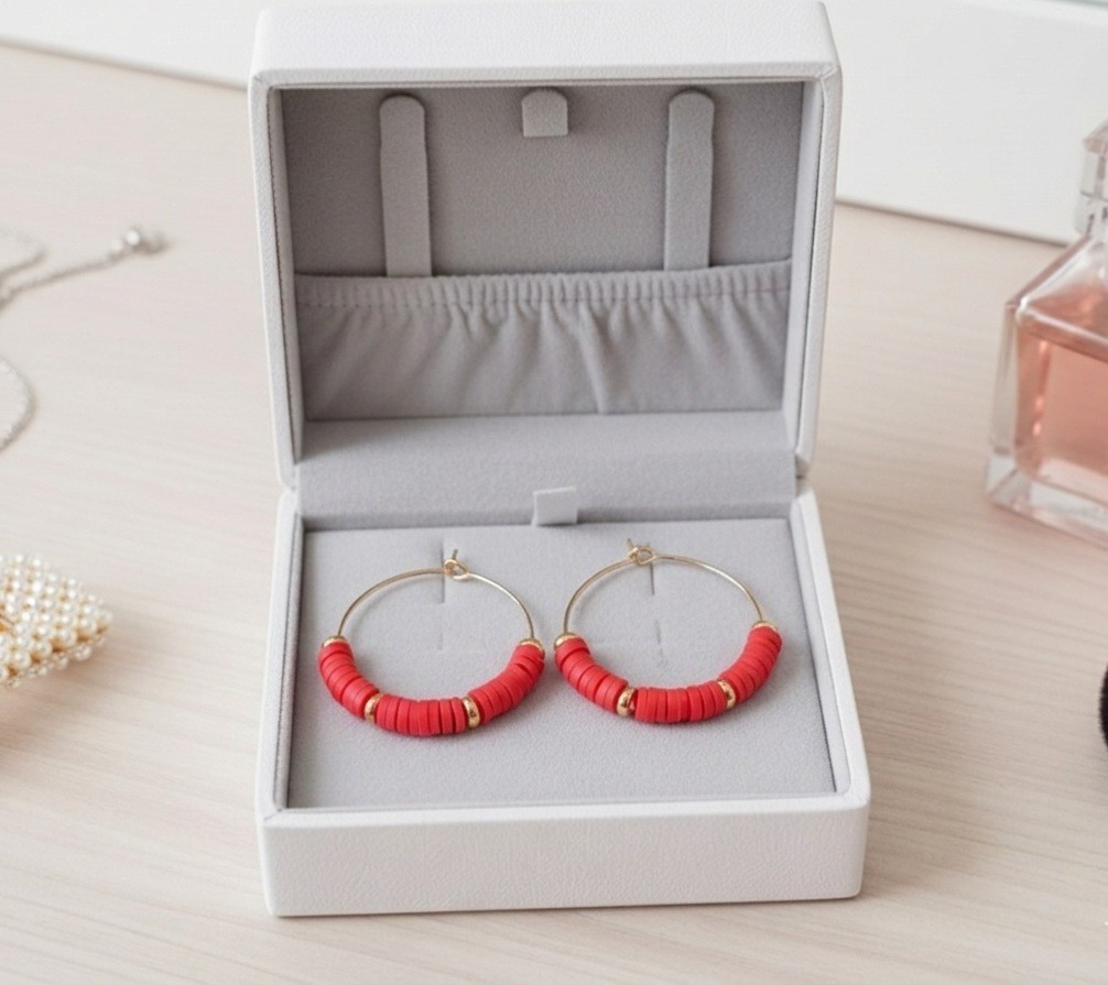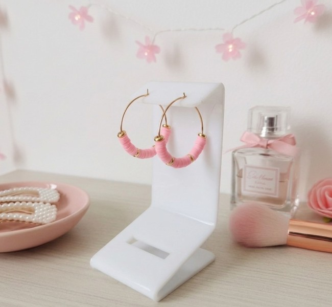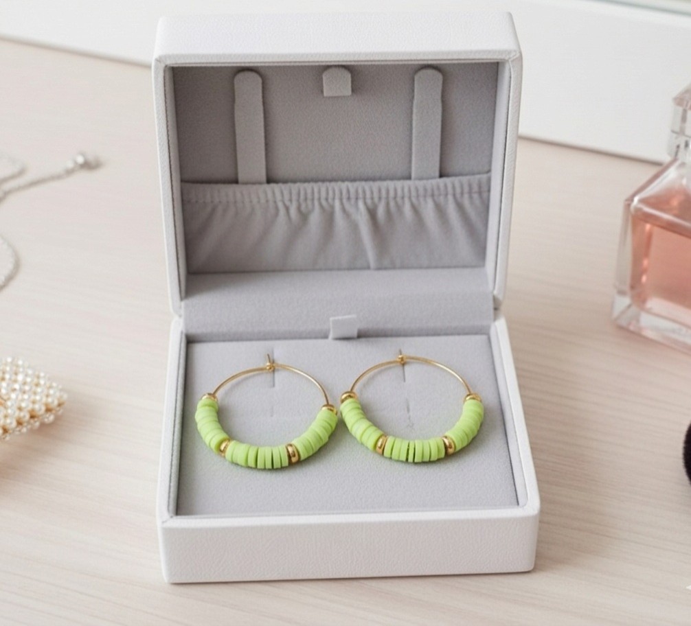 Boucles d'oreilles créoles acier inoxydable doré et perles Heishi