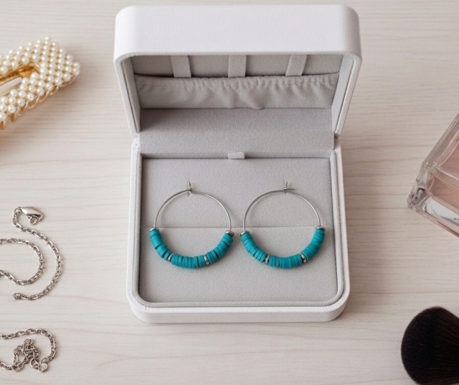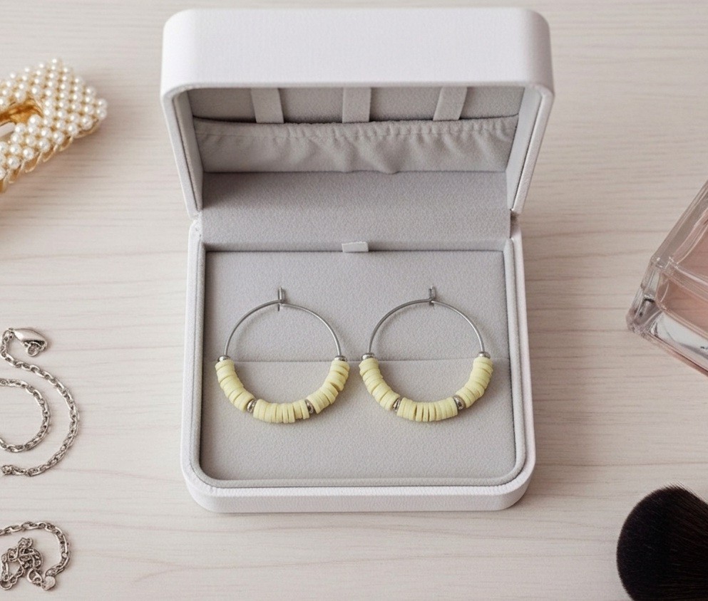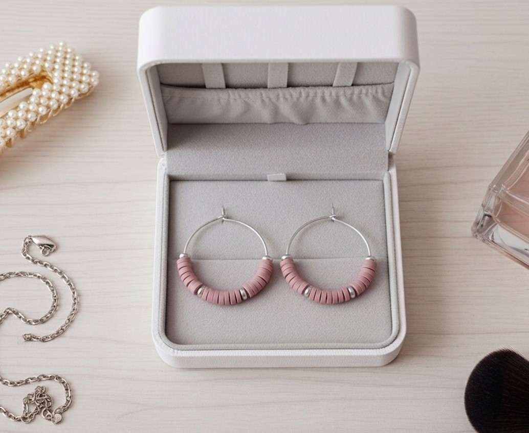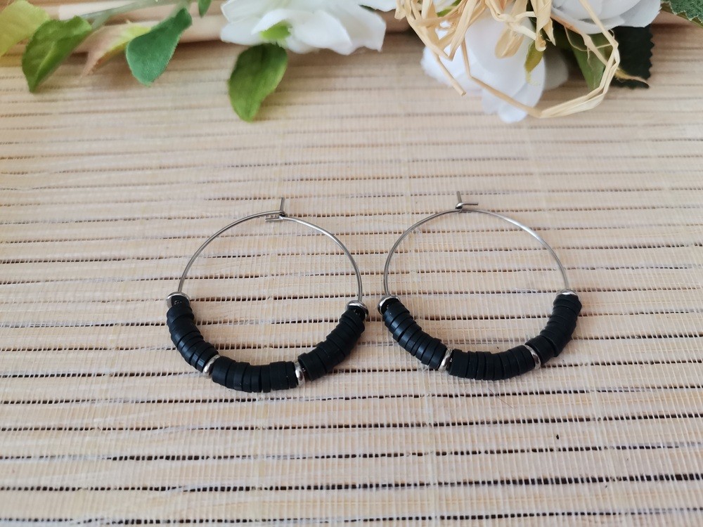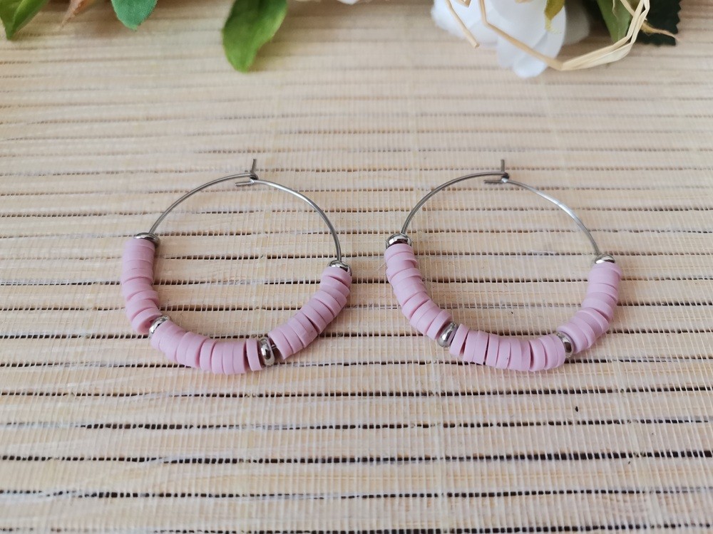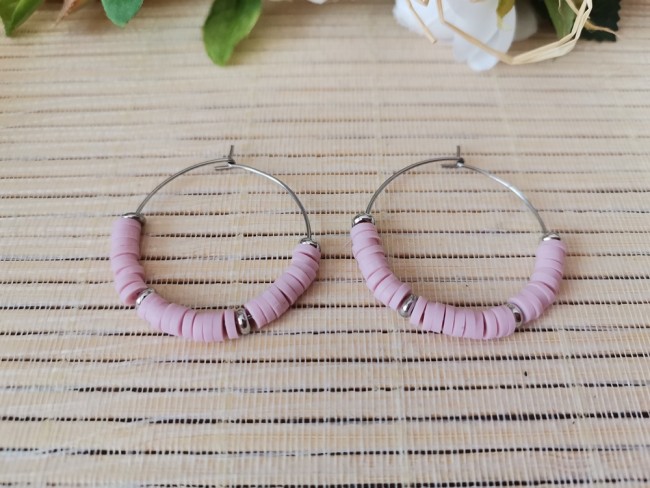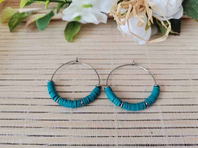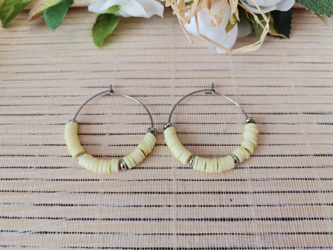 Boucles d'oreilles créoles acier inoxydable et perles Heishi