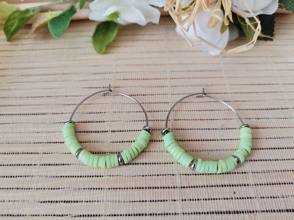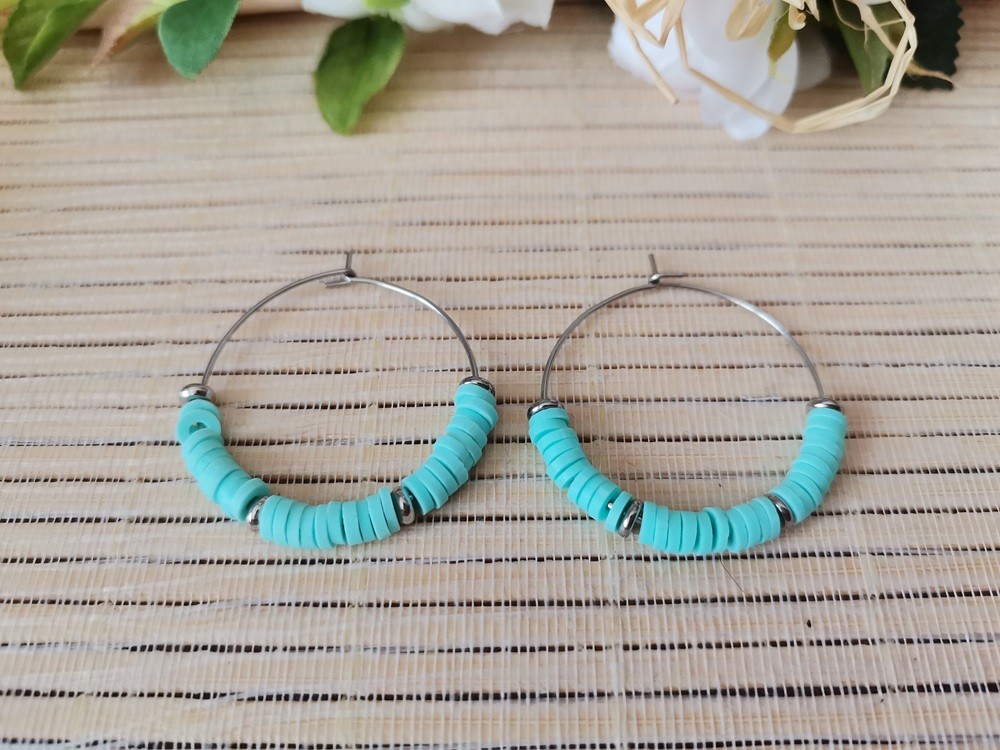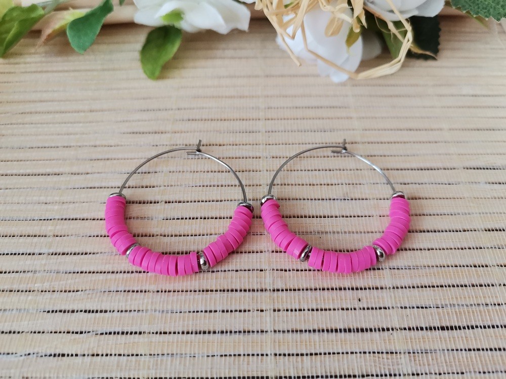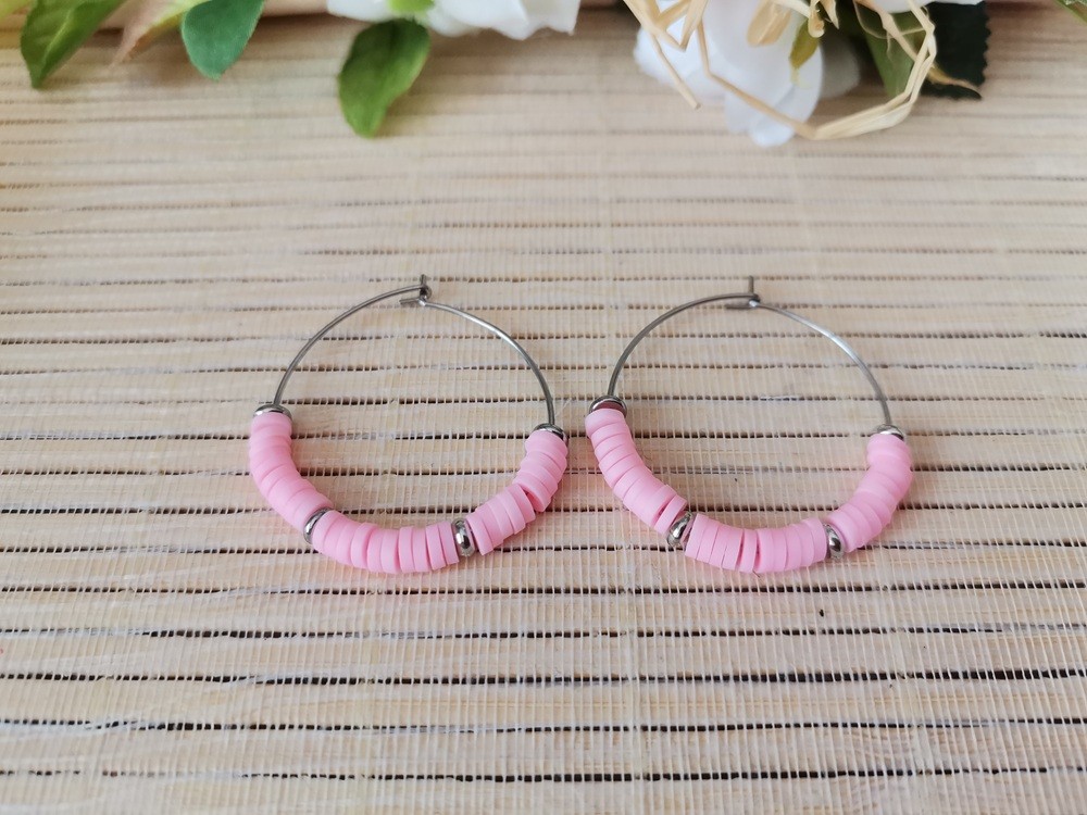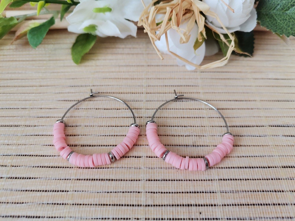 Boucles d'oreilles créoles 30 mm acier inoxydable et perles rondelles Heishi