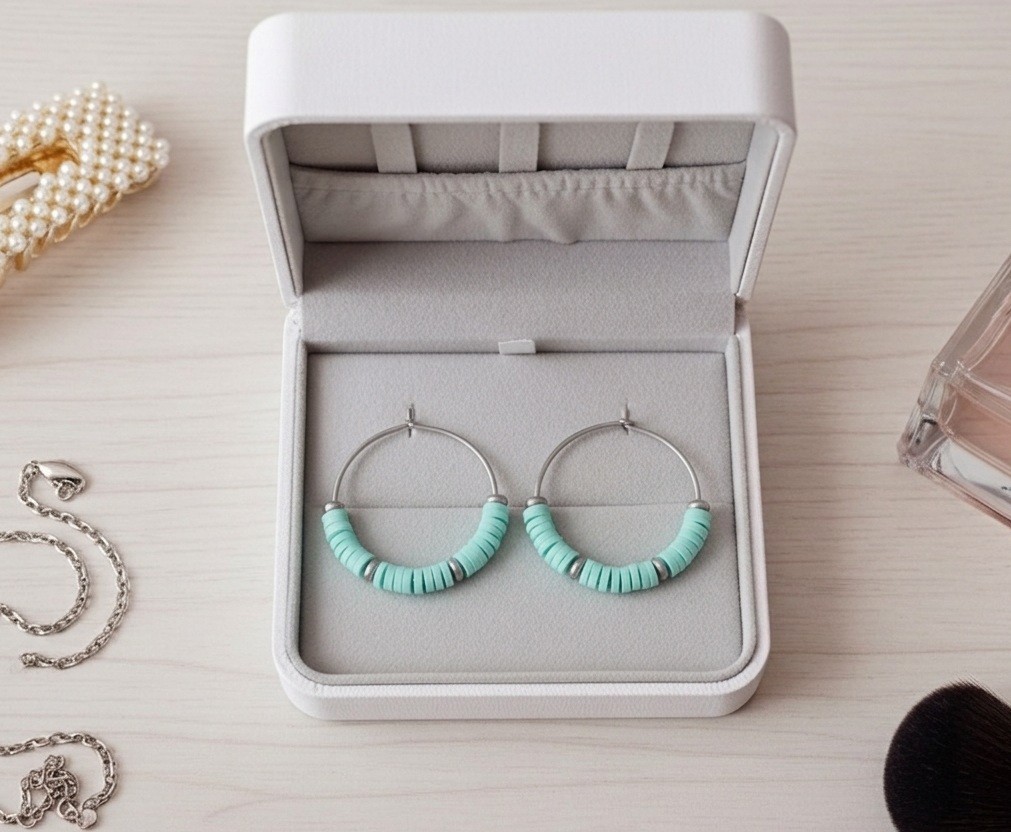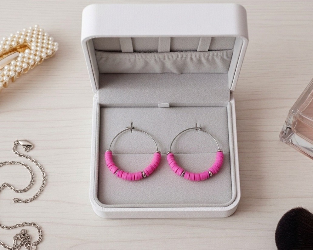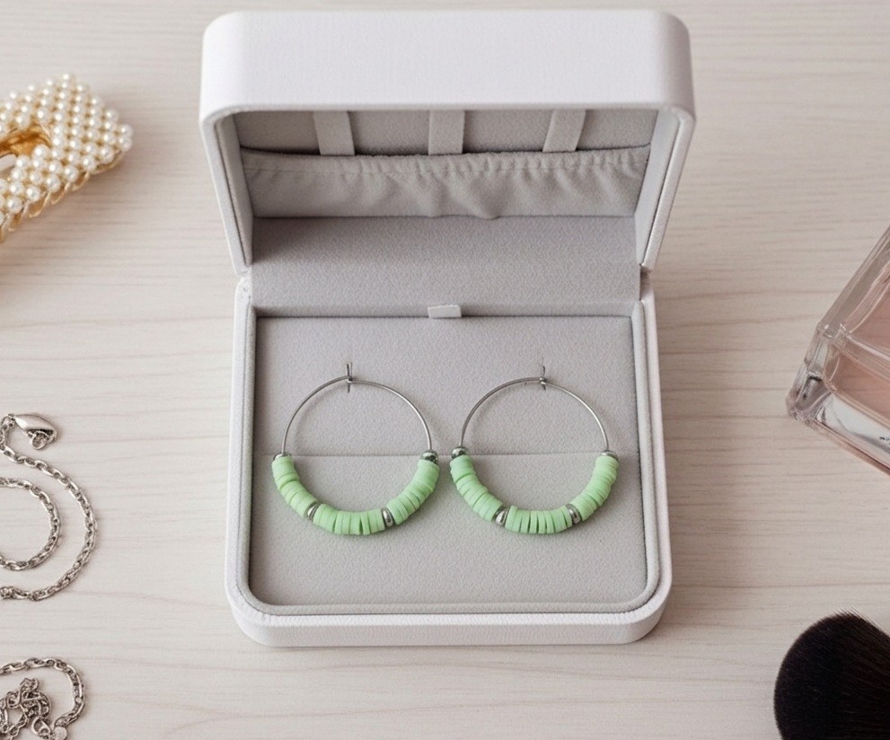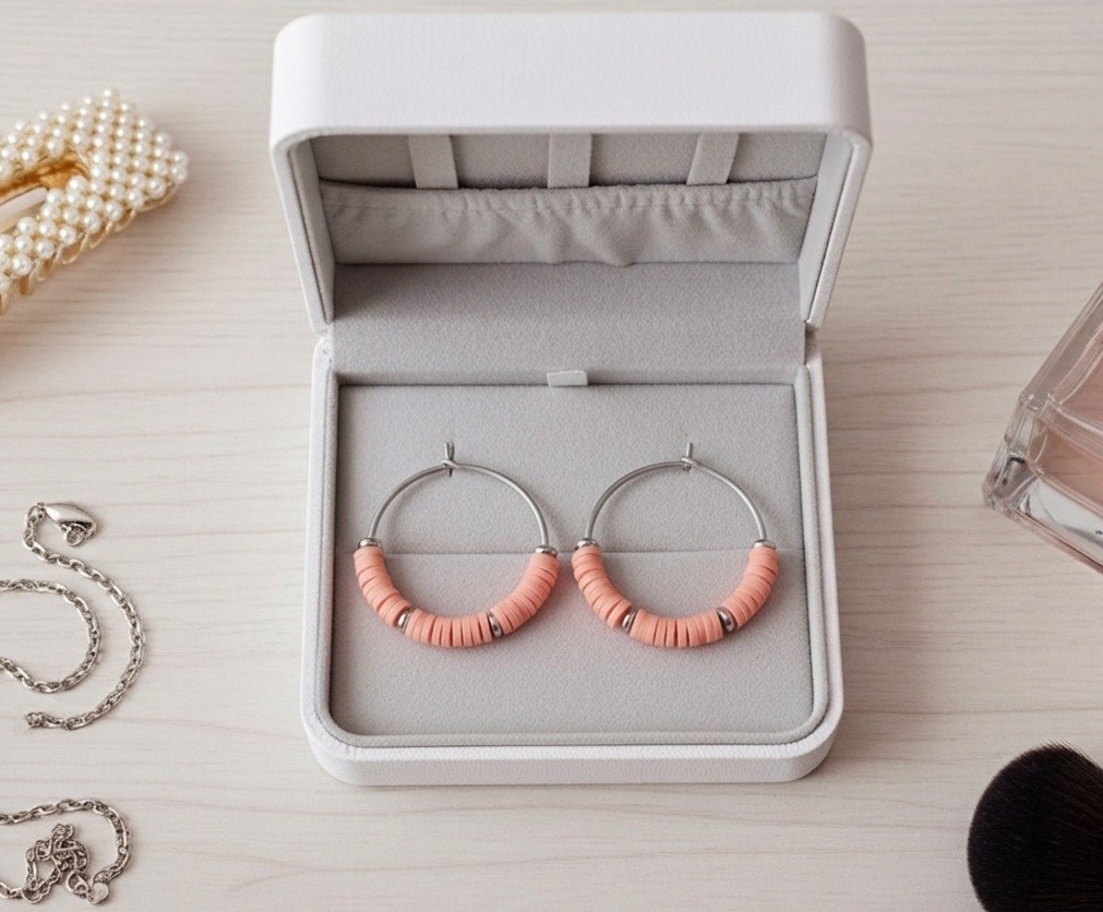 Boucles d'oreilles créoles 30 mm acier inoxydable et perles rondelles Heishi