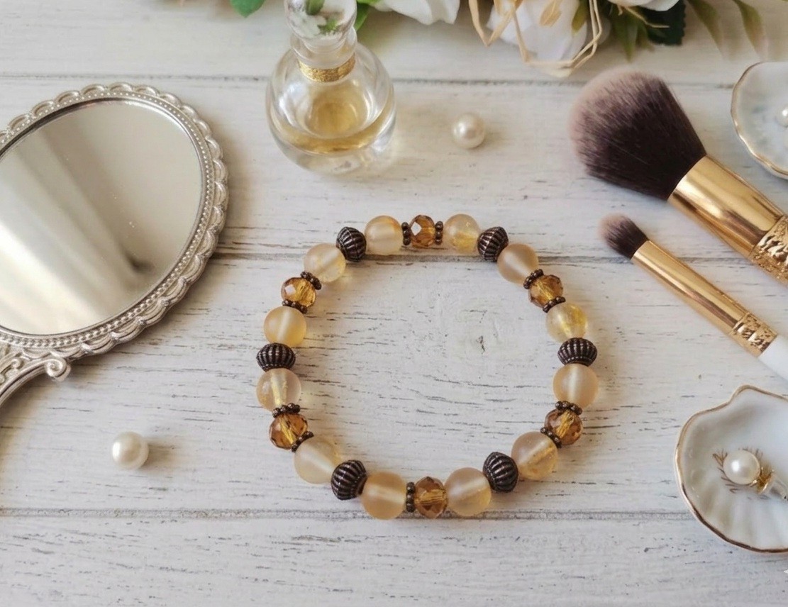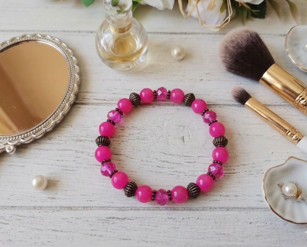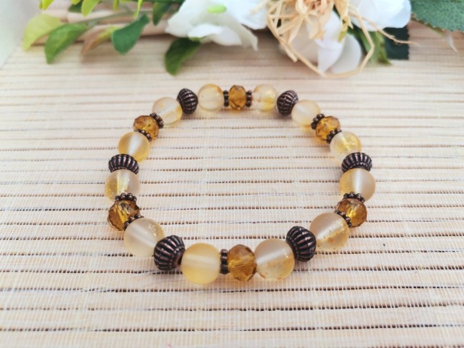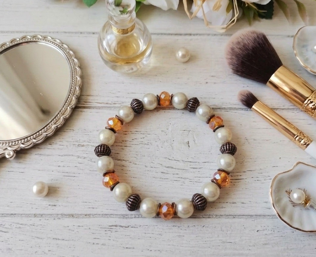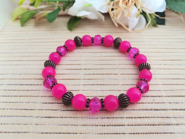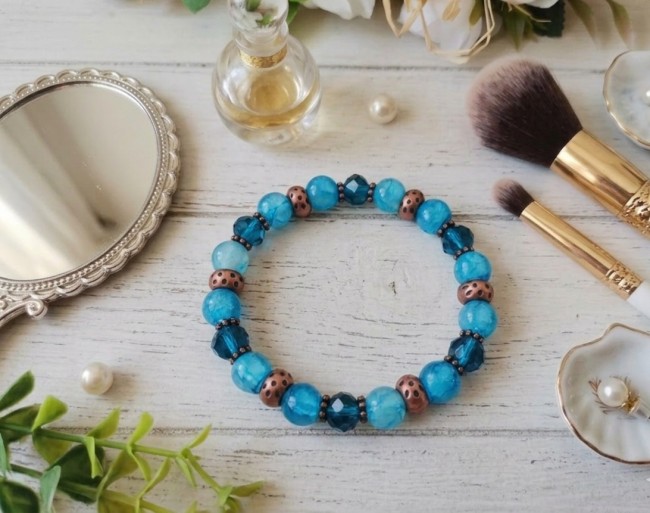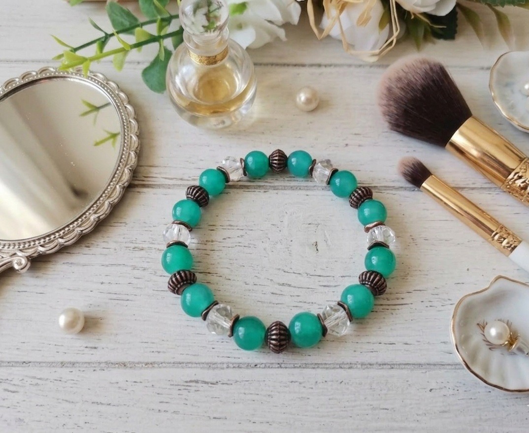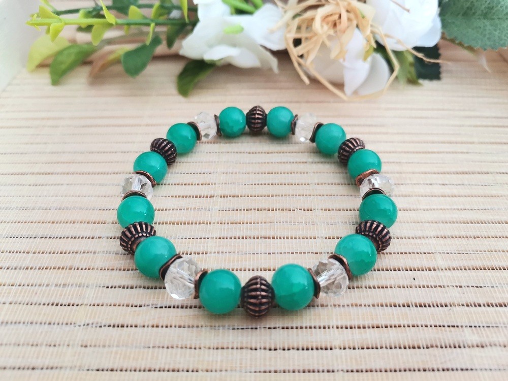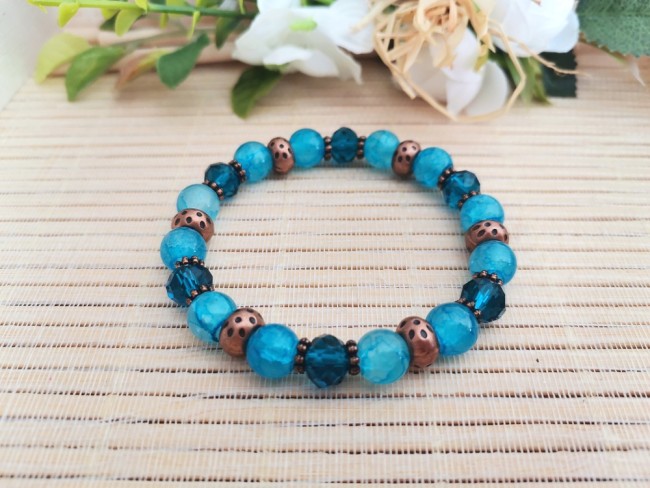 Bracelet fil élastique avec perles en verre et apprêts cuivre rouge