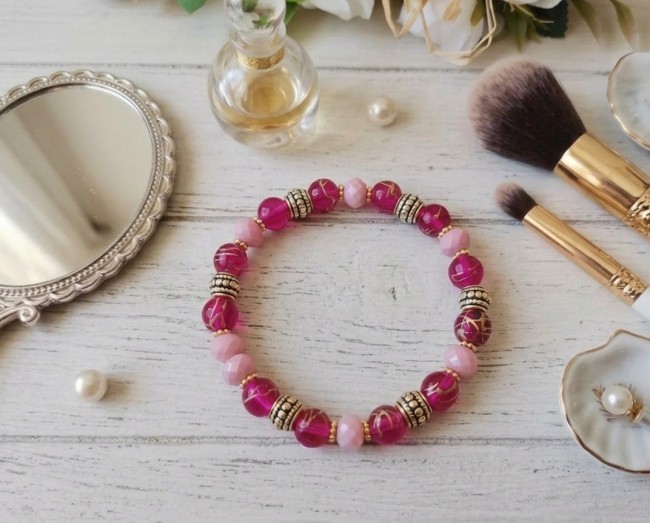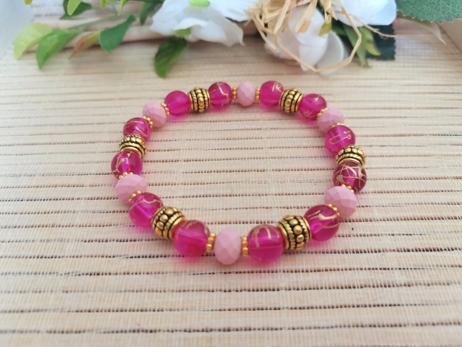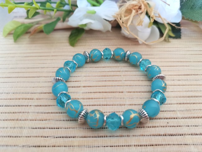 Bracelet fil élastique avec perles en verre tréfilé doré