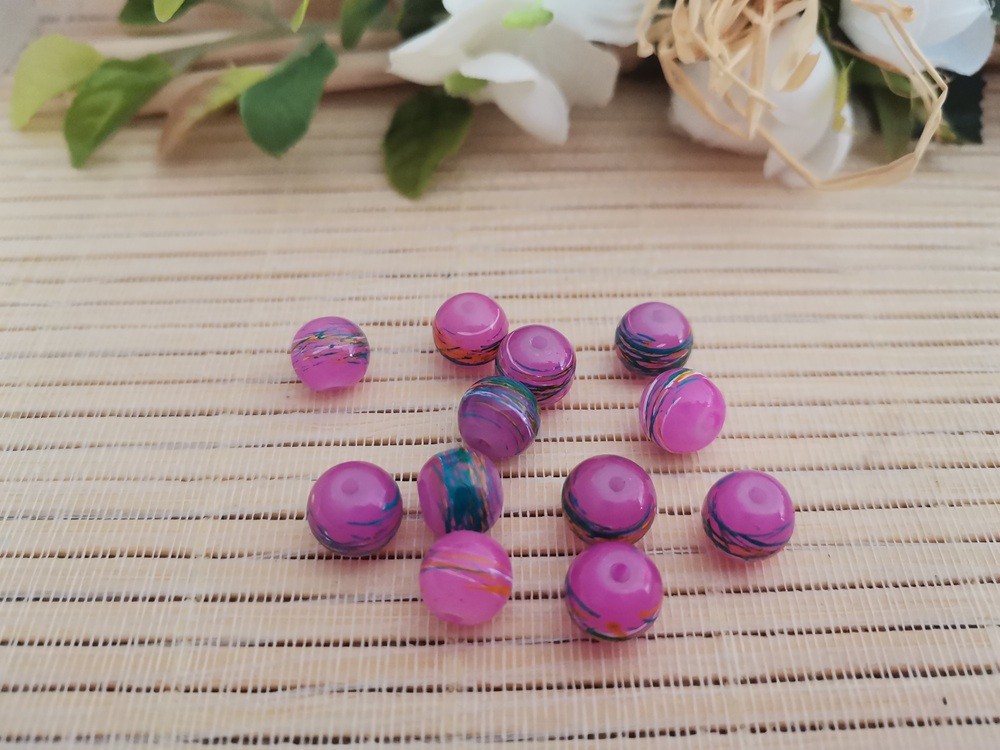 20 Perles en verre 8 mm mauve trait multicolore