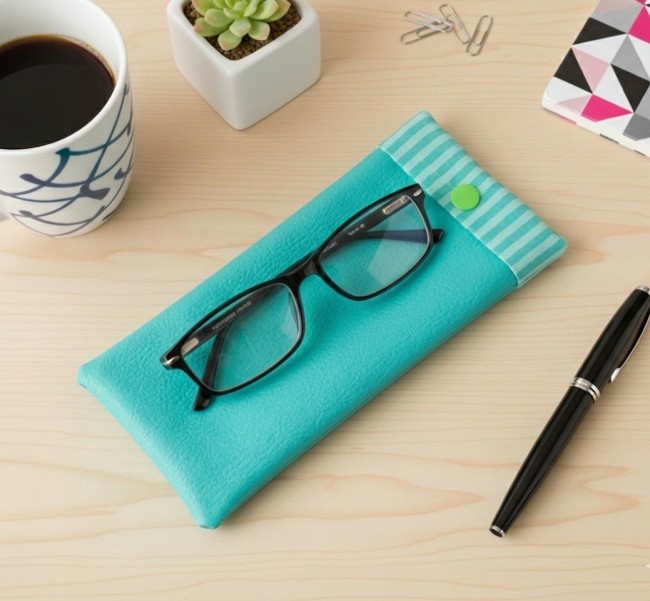 Etui à lunette en simili cuir vert d'eau et tissus motifs fleurs