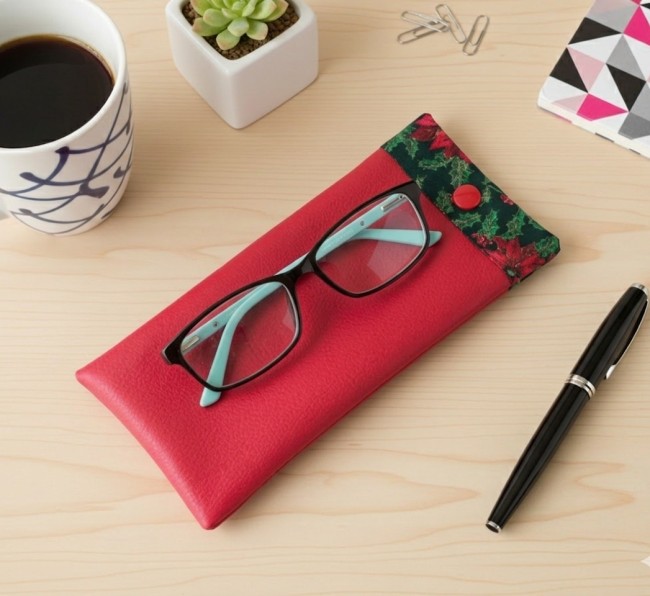 Etui à lunette en simili cuir rouge et tissus motif imprimé