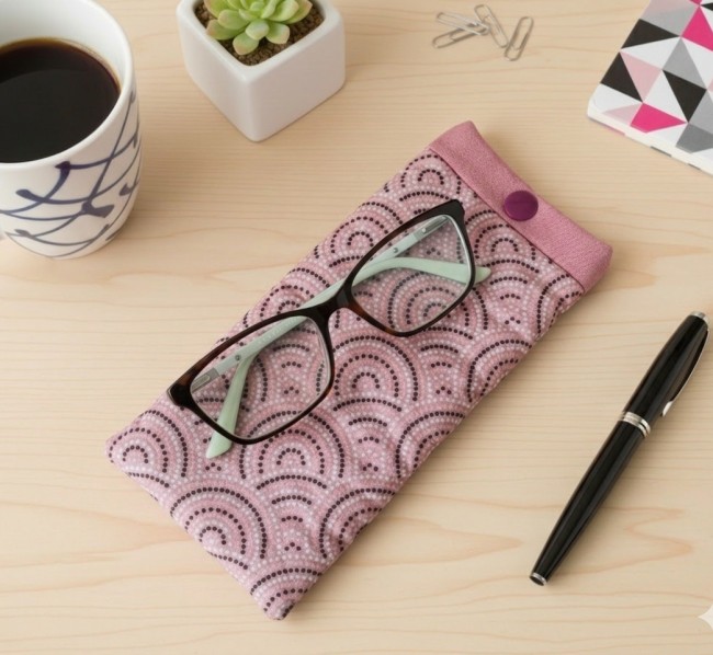 Etui à lunette en simili rose et tissus coton imprimé fleurs