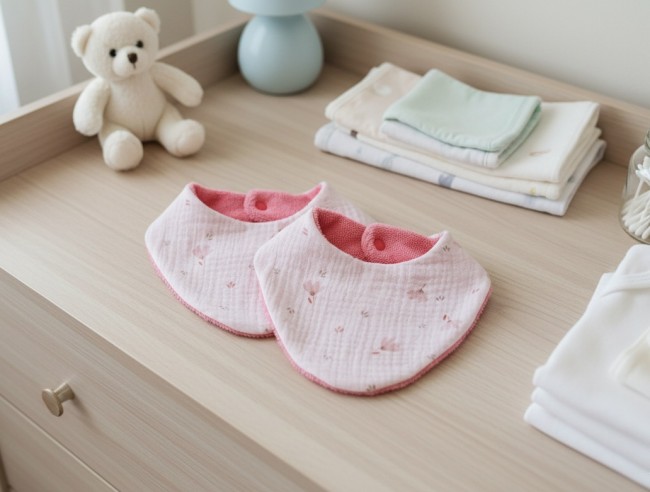 Lot de 2 bavoirs bébé double gaze rose et éponge bambou